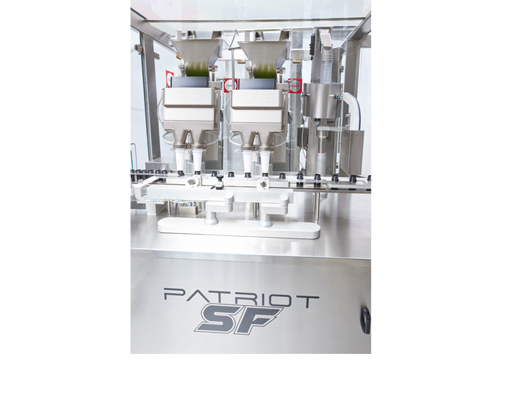 The Patriot SF-2 compact automatic servo-driven inline sequential tablet counting Monoblock handle plastic or glass bottles and tablets/capsules/soft gels and caplets of any shape for the pharmaceutical, healthcare and nutraceutical industries.
